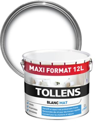 Peinture Bicouche Murs Plafonds Boiseries Tollens Blanc Mat 12l